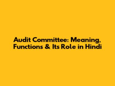 Audit Committee: Meaning, Functions & Its Role In Hindi
