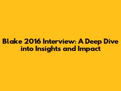 Blake 2016 Interview Deep Dive