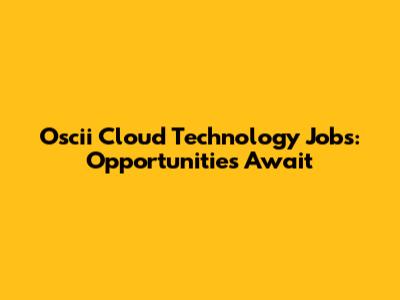 Cloud Technology Jobs At Oscii: Opportunities Await