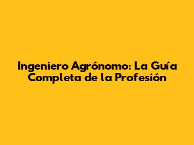 Ingeniero Agrónomo: La Guía Completa De La Profesión