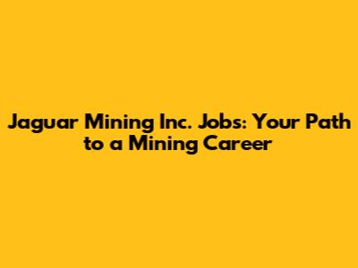 Jaguar Mining Inc. Jobs: Your Path To A Mining Career