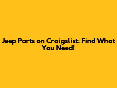 Jeep Parts On Craigslist: Find What You Need!