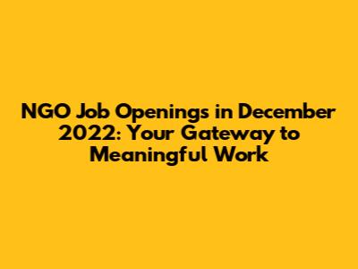 NGO Job Openings December 2022: Your Guide To Landing A Role