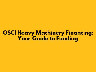 OSCI Heavy Machinery Financing: Your Guide To Funding