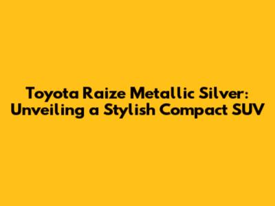 Toyota Raize Metallic Silver: Specs, Price, And More!