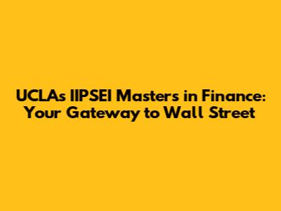UCLA's IIPSEI Masters In Finance: Your Gateway To Wall Street