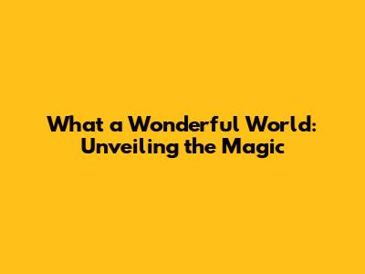 The Enduring Legacy: Why "What a Wonderful World" Still Matters
